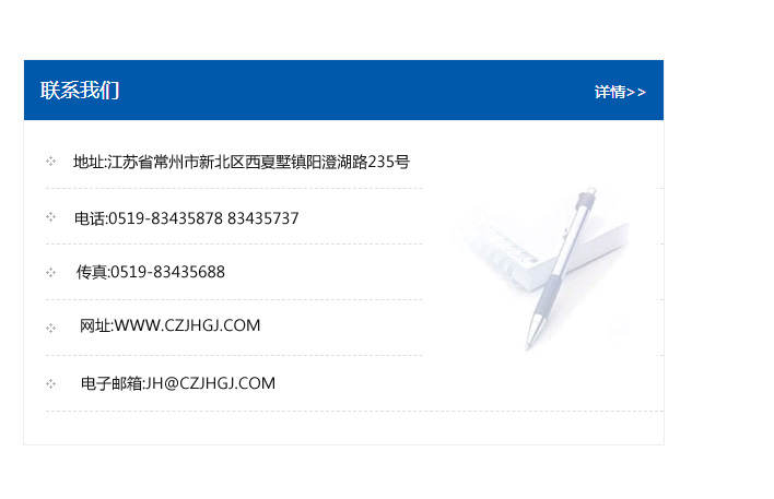 傳真:0519-83435688    郵編:213135    網址:WWW.czjhgj_com.tjbbyy.com    電子郵箱:JH@czjhgj_com.tjbbyy.com